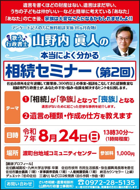 当事務所の代表 山野内眞人は、公務員出身。平成28年3月、36年間勤めた大分県「佐伯市役所」を、市民生活部長の職を最後に、「定年退職」しました。