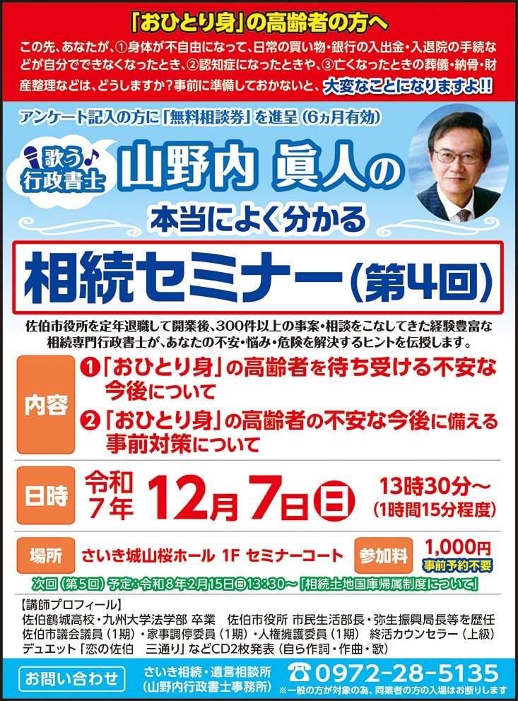 当事務所の代表 山野内眞人は、公務員出身。平成28年3月、36年間勤めた大分県「佐伯市役所」を、市民生活部長の職を最後に、「定年退職」しました。